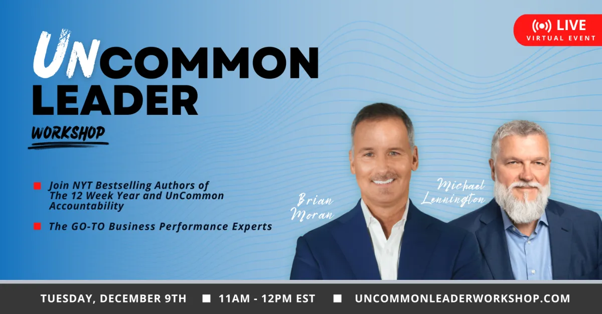 Through their bestselling works, The 12 Week Year and Uncommon Accountability, they have helped thousands of business owners and leaders accomplish more in 12 weeks than most do in 12 months.